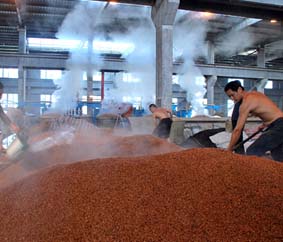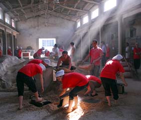 老厂区相册引子: 白云边老厂区位于松滋河西岸的青峰山上。厂区依蜿蜒的山峦而建,景色怡人,气候温润,具有不可复制的独特的酿酒生态环境。甘之如饴的白云边酒,正是在这里完成从粮食到原酒的蝶变。自1980年以来,老厂区为白云边的发展做出了巨大的贡献,成就了过去无数个辉煌的历史瞬间,更凝聚了新老白云边人的青春岁月。如今,随着白云边工业园项目建成投入使用,新老厂区实现功能分区,老厂区仍旧承载着制曲、酿造和原酒储存的重要功能。在这里,可以见证白云边传统酿造工艺独有的魅力,更能深刻感受白云边深厚的历史感。白云边在这里起步,从这里出发,不断刷新历史,不断创造辉煌。